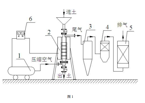 1、在污染场地搭建土壤热解析修复设备;修复设备包括:蒸汽热风机、通风管路、抽提管道、冷 凝器、气液分离器、污水储存箱、抽风机、燃烧炉、碱液喷淋塔、活性炭吸附塔及在线监测系 统;蒸汽热风机的出风口与通风管路的入口相连通;冷凝器出口与气液分离器入口连接,气 液分离器的液体出口与污水储存箱连接,气液分离器的气体出口与抽风机的进风口相连 通;抽风机的出风口与燃烧炉的进口相连通,燃烧炉的出口与碱液喷淋塔的入口相连通,碱 液喷淋塔的出口与活性炭吸附塔的进口相连通;