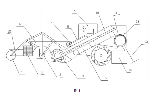 对于上述问题出现的一些问题我们有一种土壤筛分装置,以解决现有技术中因地膜被风化后 无法捡拾而造成的农田有可能无法再生长作物的问题。轮式行走车辆的车架前部设置有能升降的取土铲,取土铲的后部设置有土壤输送装置,土壤输送装置的后部连接有筛土装置,筛土装置的粗料 出口上连接有杂物箱。取土铲用于设置在轮式行走车辆上,在轮式行走车辆行走时候,取土铲铲取地表含有碎地膜的土壤,这些土壤在轮式行走车辆前行时不断进入取土铲上的土壤的推挤下进入土 壤输送装置,经过土壤输送装置的输送进入筛土装置,碎地膜以及杂物被送入杂物箱中,干净的土壤会由筛土装置中漏下回归田地中,从而可以将地膜清除干净,同时还可以对土壤里的药瓶、及其 他杂物进行清除,能从根本上清除解决细小无法捡拾的地膜,彻底解决污染问题,使农田绿色环保。